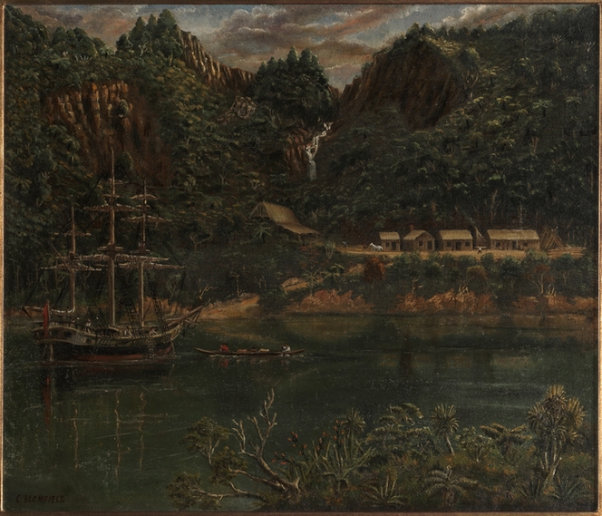 Charles Blomfield - 'In Whangaroa Harbour' c.1880-89. Oil on canvas, 375 x 440 mm.