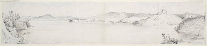 John Kinder - 'Panorama of Whangaroa Harbour' 1858. Pencil on paper, 98 x 455mm.
