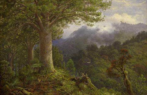 Charles Blomfield - 'The Mountain's Crown, Kauri Forest, Whangaroa'. 1918. Oil on canvas, 508 x 762 mm.