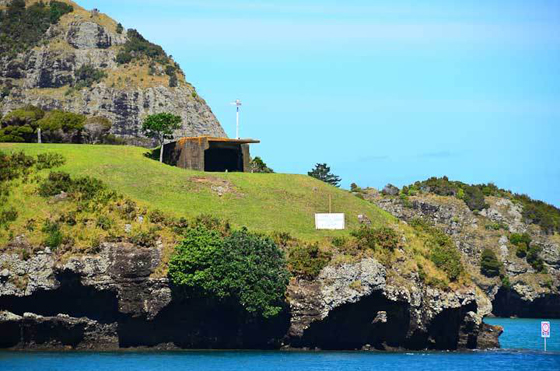 During World War 2, fears of invasion by the Japanese prompted the construction of coastal defenses around the harbour entrance. Whangaroa Harbour could be of immense strategic value to an invading fleet, so the defenses were substantial and built and operated by both the army and the navy. Large gun emplacements guarded the harbour entrance on the south head and a series of radio-controlled mines were moored in the passage inside the entrance. The army's 9th Heavy (Coast) Regiment built a barracks to maintain the 6 inch calibre gun on the south head and the navy were in charge of the mines from their station at Matakaraka Bay, near Tatahi (the Haystack).