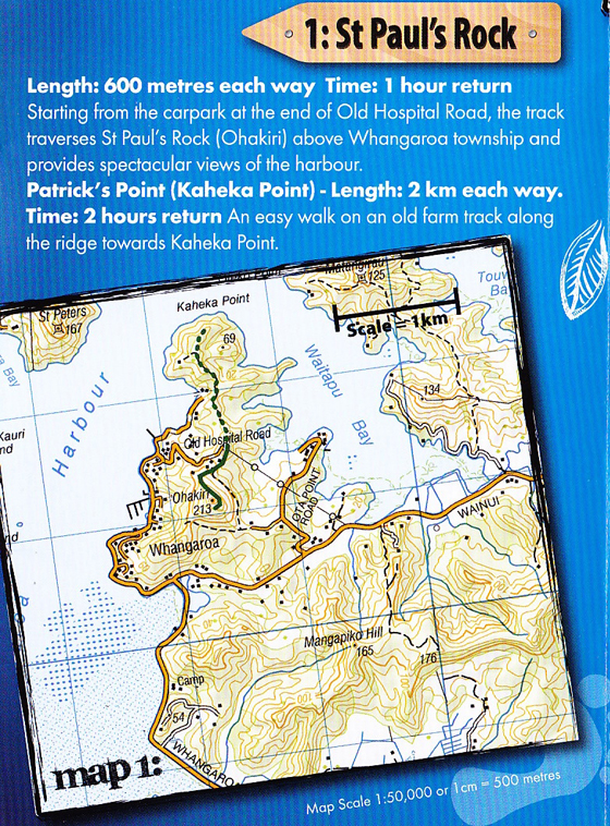 Whangaroa Community Develoment, in conjunction with the Department of Conservation, has published a handy pocket-sized map guide with scaled topography, showing the various walking tracks around the harbour.